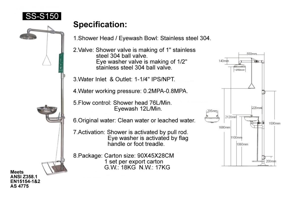 - อ่างล้างตาฉุกเฉินสแตนเลส พร้อมฝักบัว