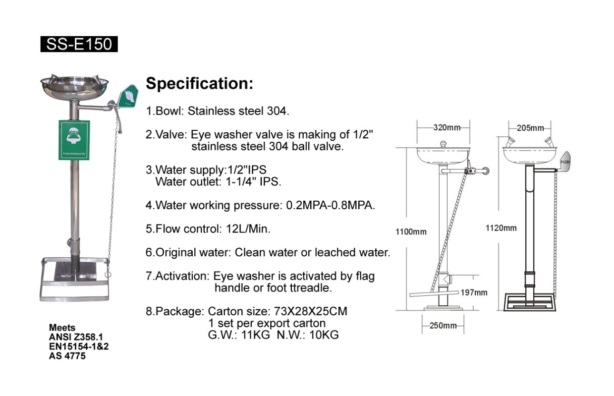 - ได้มาตรฐาน ANSI Z358.1-2004
