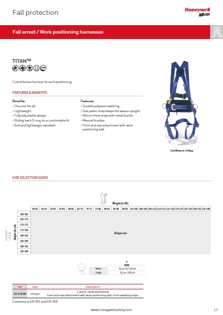 เข็มขัดกันตก Honeywell รุ่น Titan 2-point